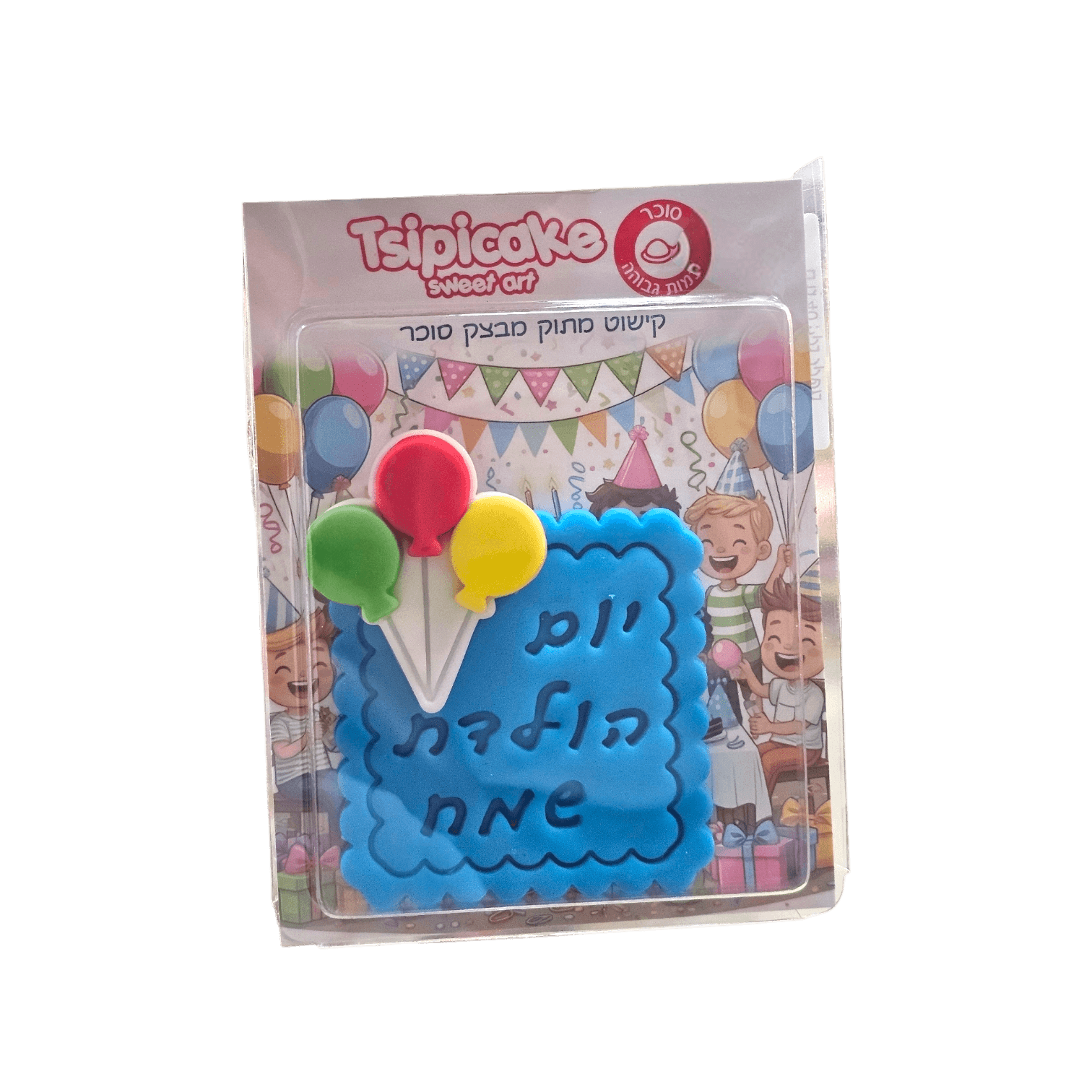 סוכר. 40 גרם. בצק סוכר שלט עם כיתוב "יום הולדת שמח" בצבע כחול