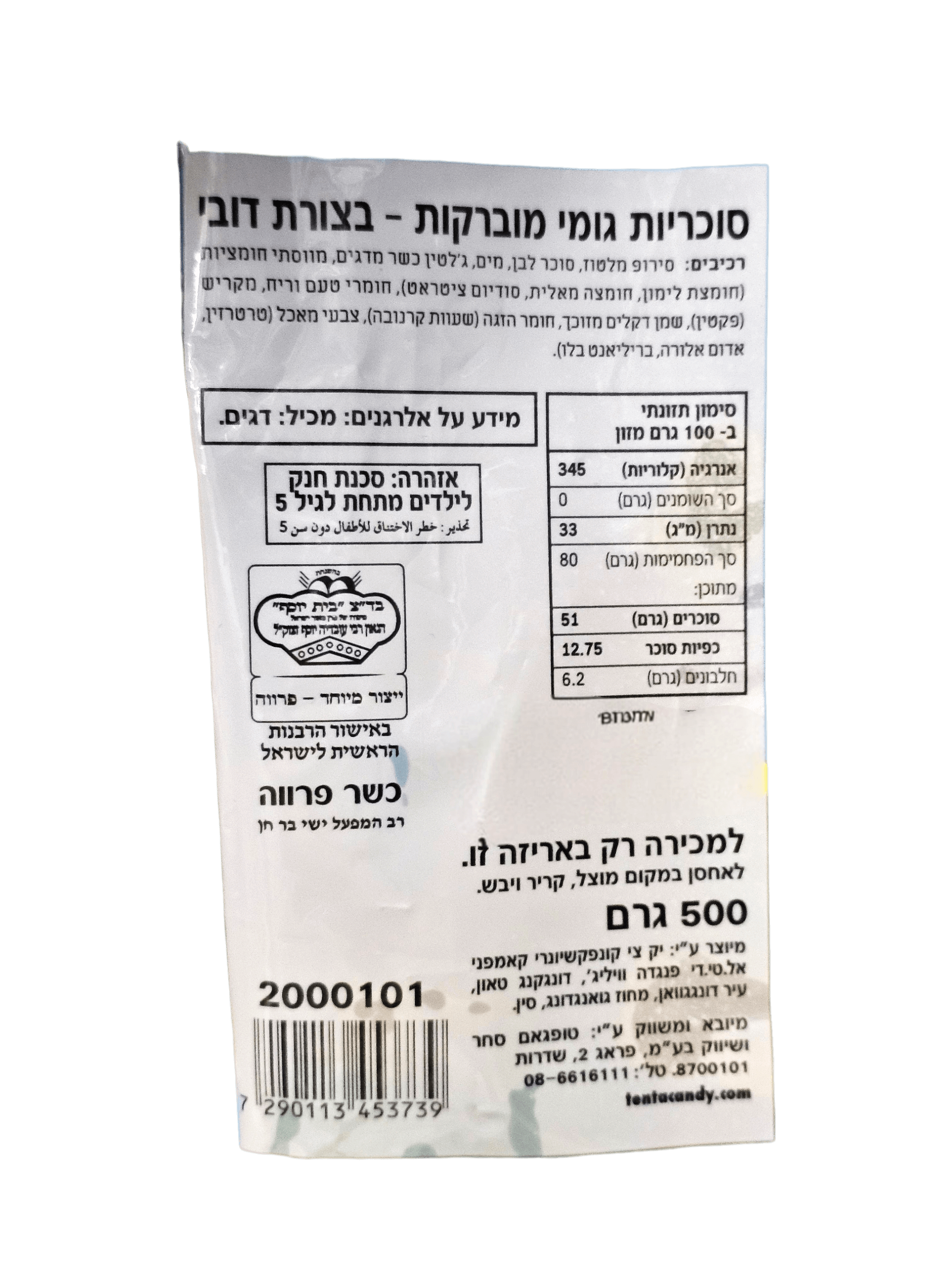 סוכר. 500 גרם. סוכריות גומי בצורת דובונים