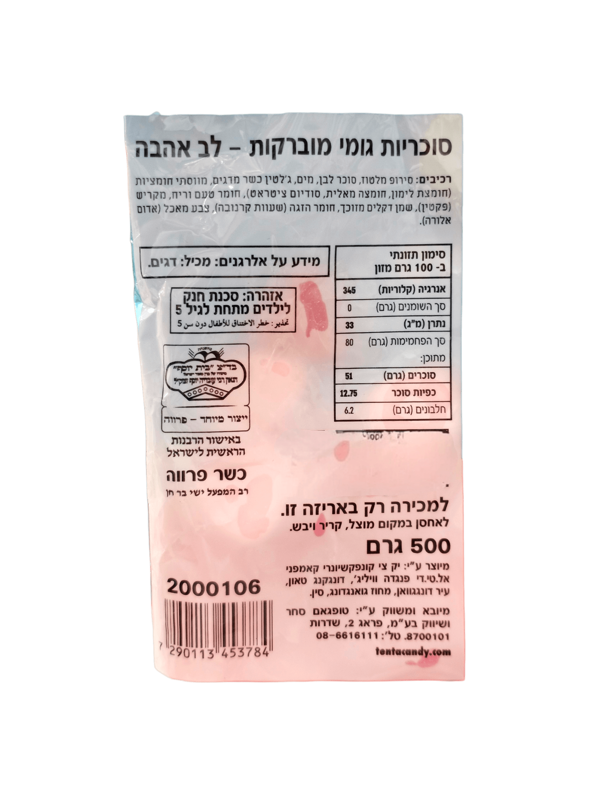 סוכר. 500 גרם. סוכריות גומי בצורת לבבות
