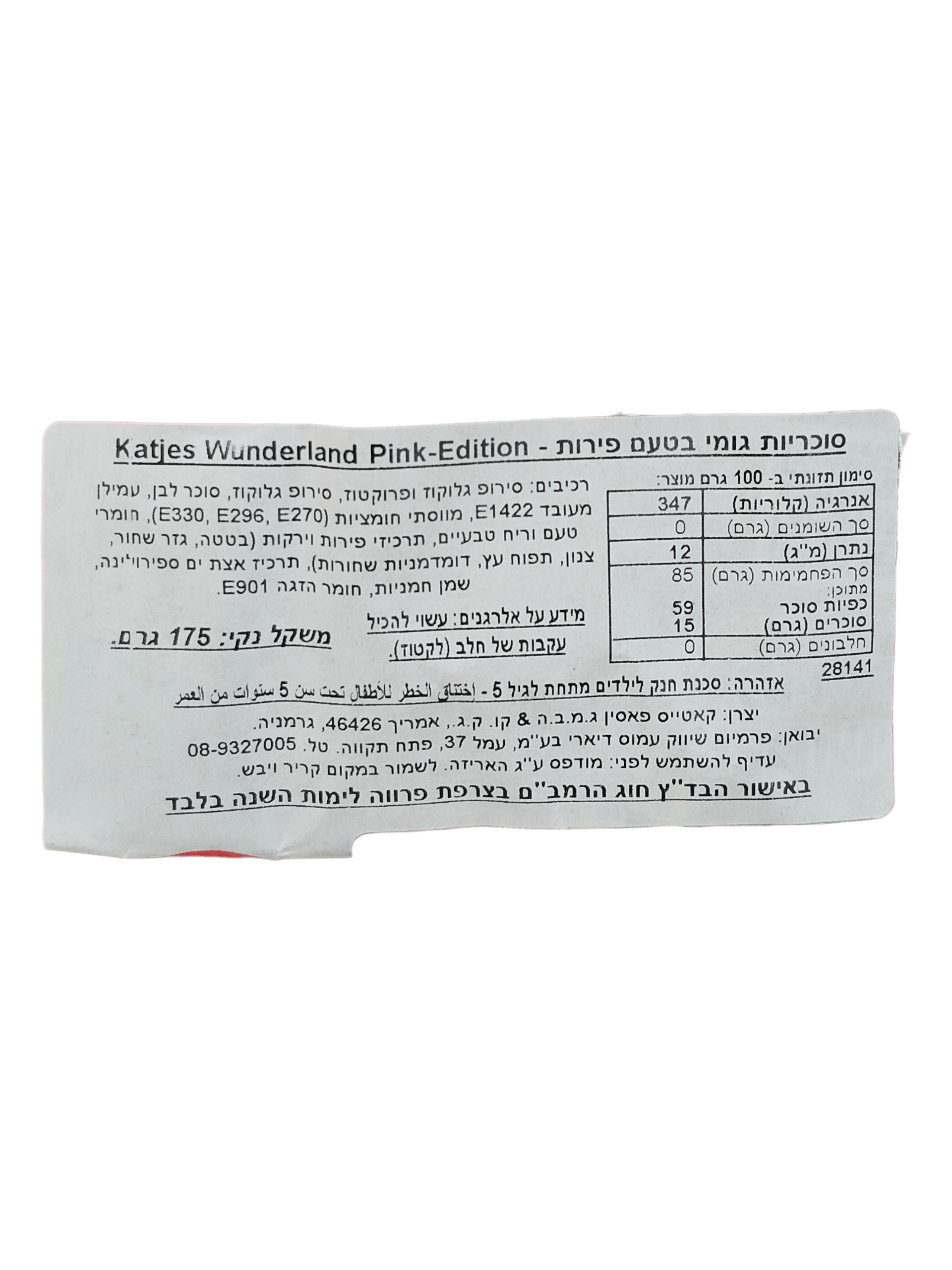 סוכר. 175 גרם. סוכריות גומי בטעמי פירות