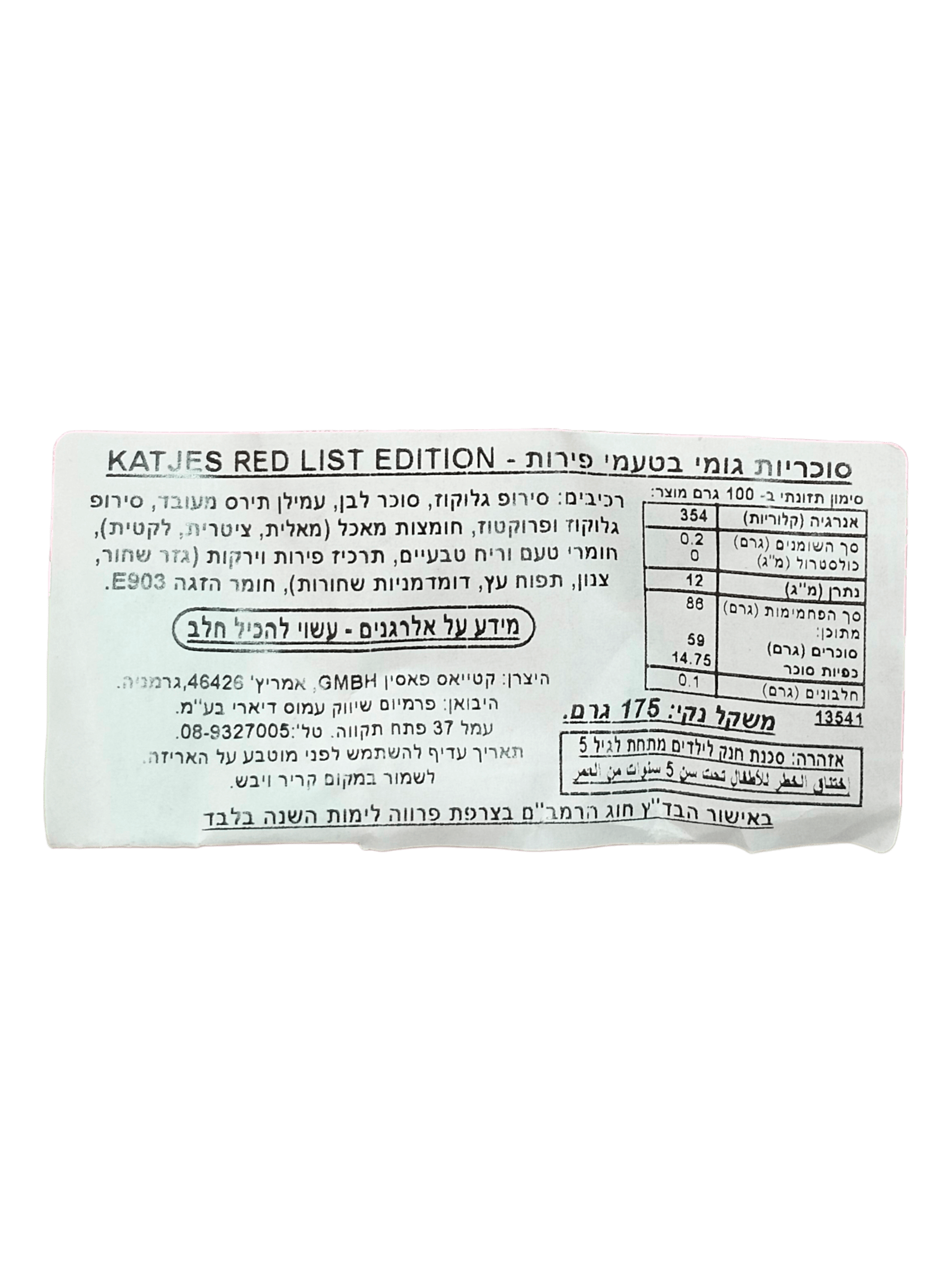 סוכר. 175 גרם. סוכריות גומי בטעמי פירות