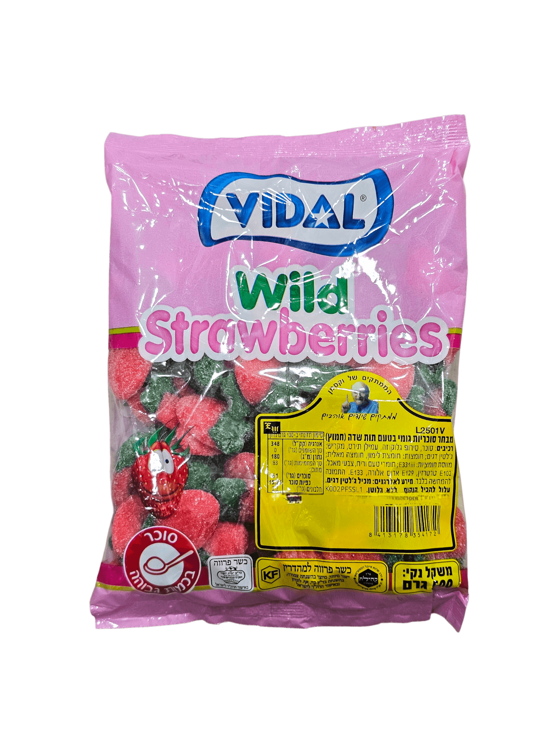 סוכר. 500 גרם. סוכריות גומי בטעמי תות שדה בצורת תות קטן מסוכרים