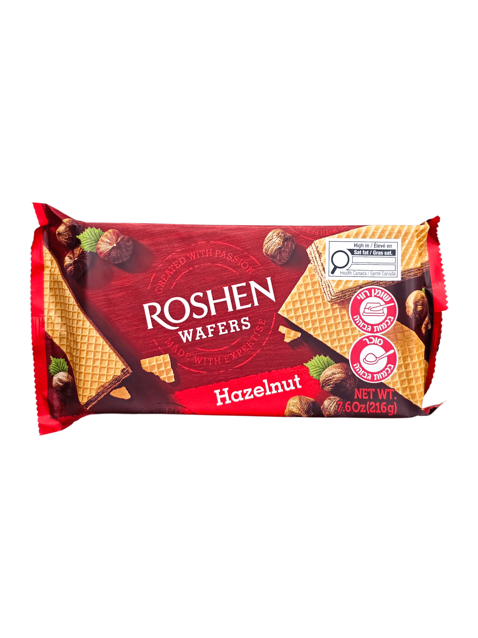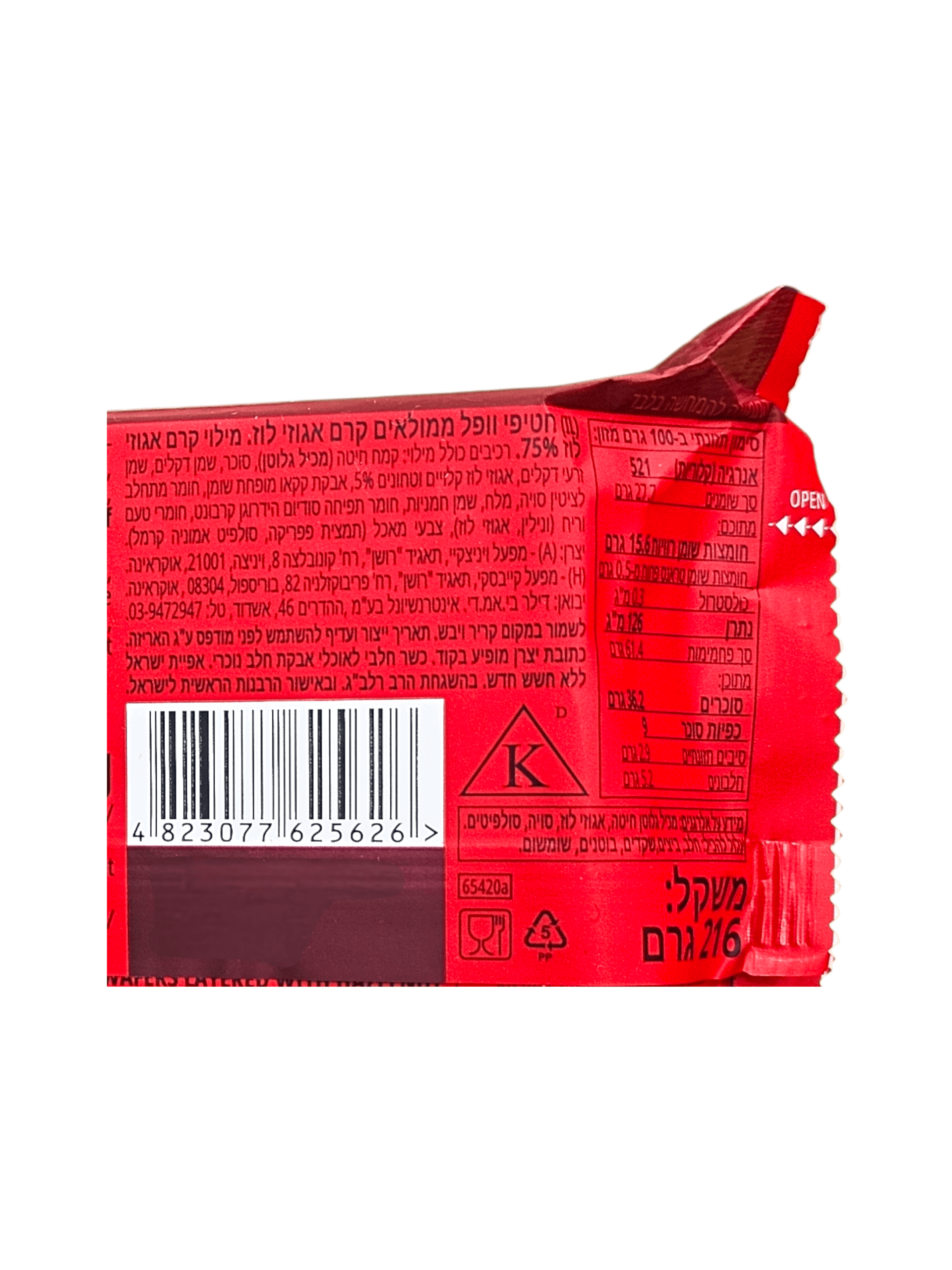 שומן. סוכר. 216 גרם. וופלים ממולאים קרם אגוזי לוז