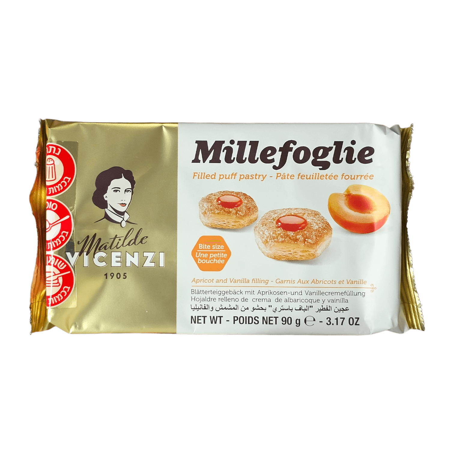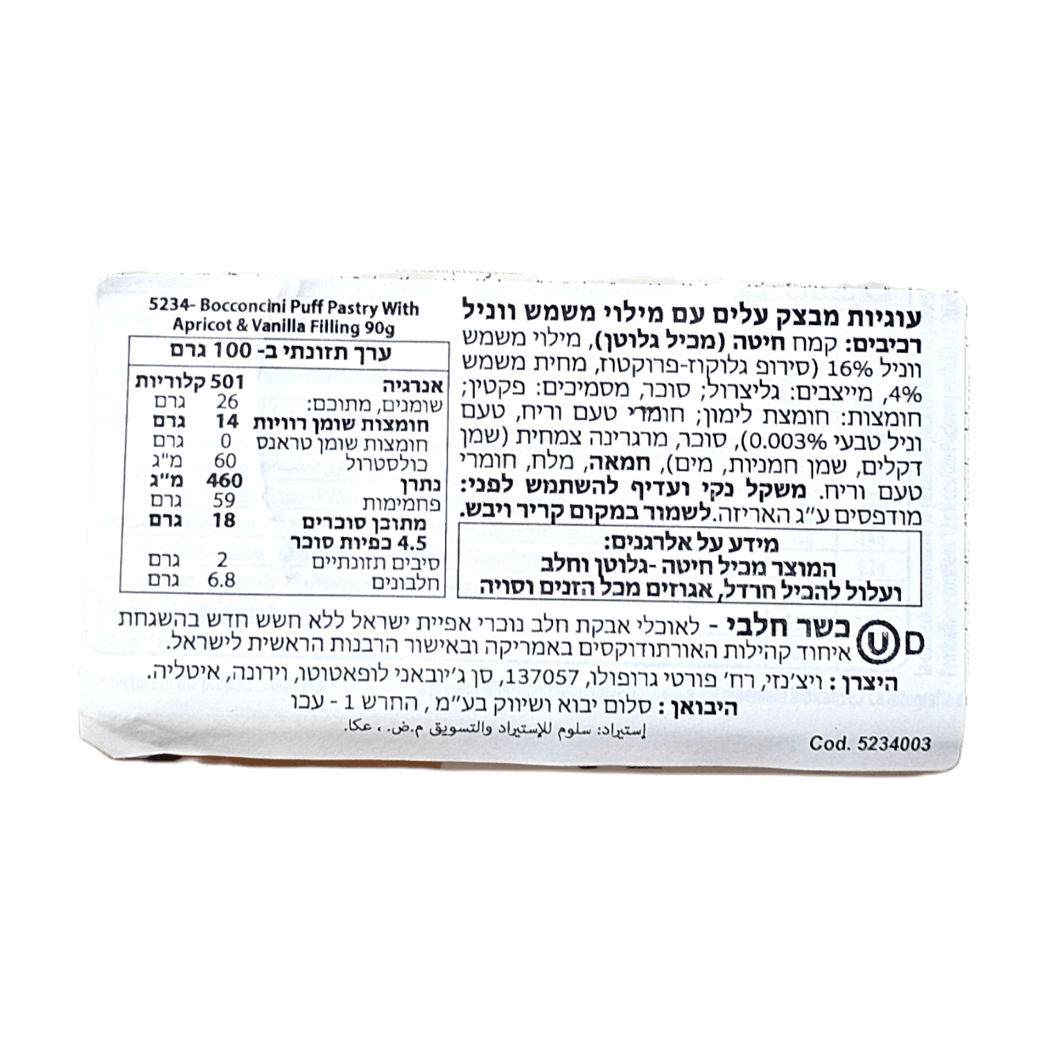 שומן. סוכר. נתרן. 90 גרם. עוגיות בצק עלים עם מילוי משמש ווניל