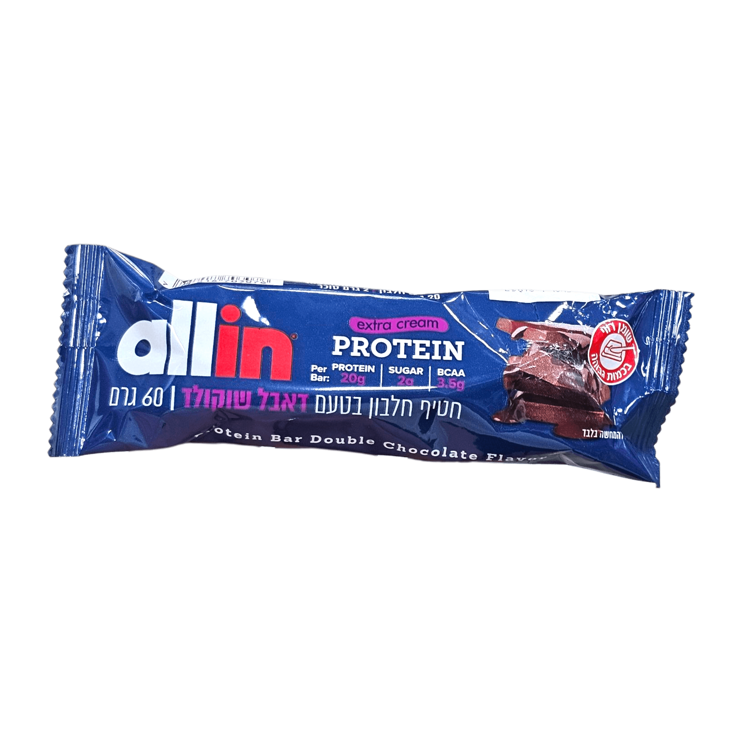 שומן. 60 גרם. חטיף עם 20 גרם חלבון בטעם דאבל שוקולד