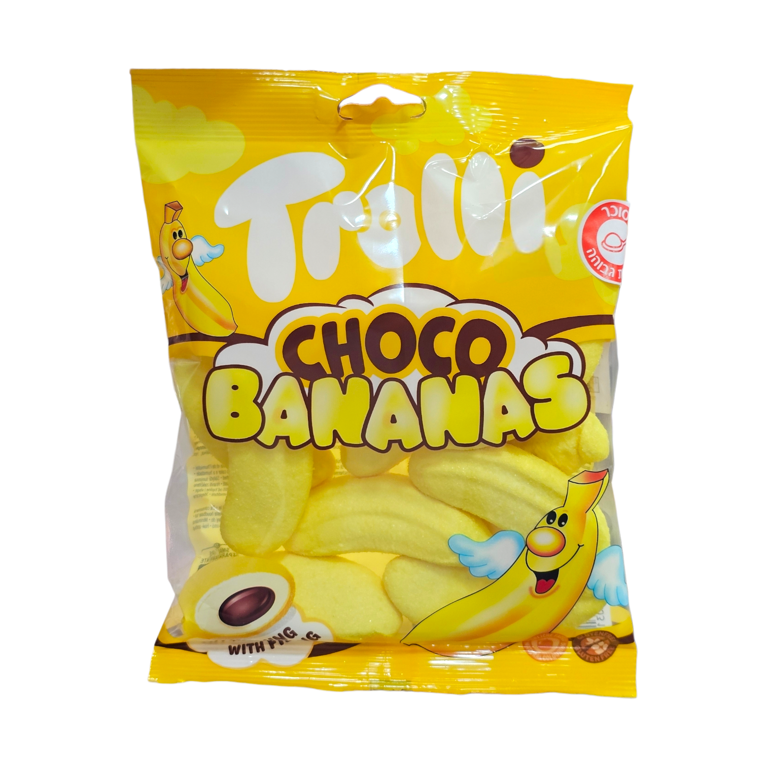 סוכר. 150 גרם. ממתקי מרשמלו בננה במילוי בטעם קקאו