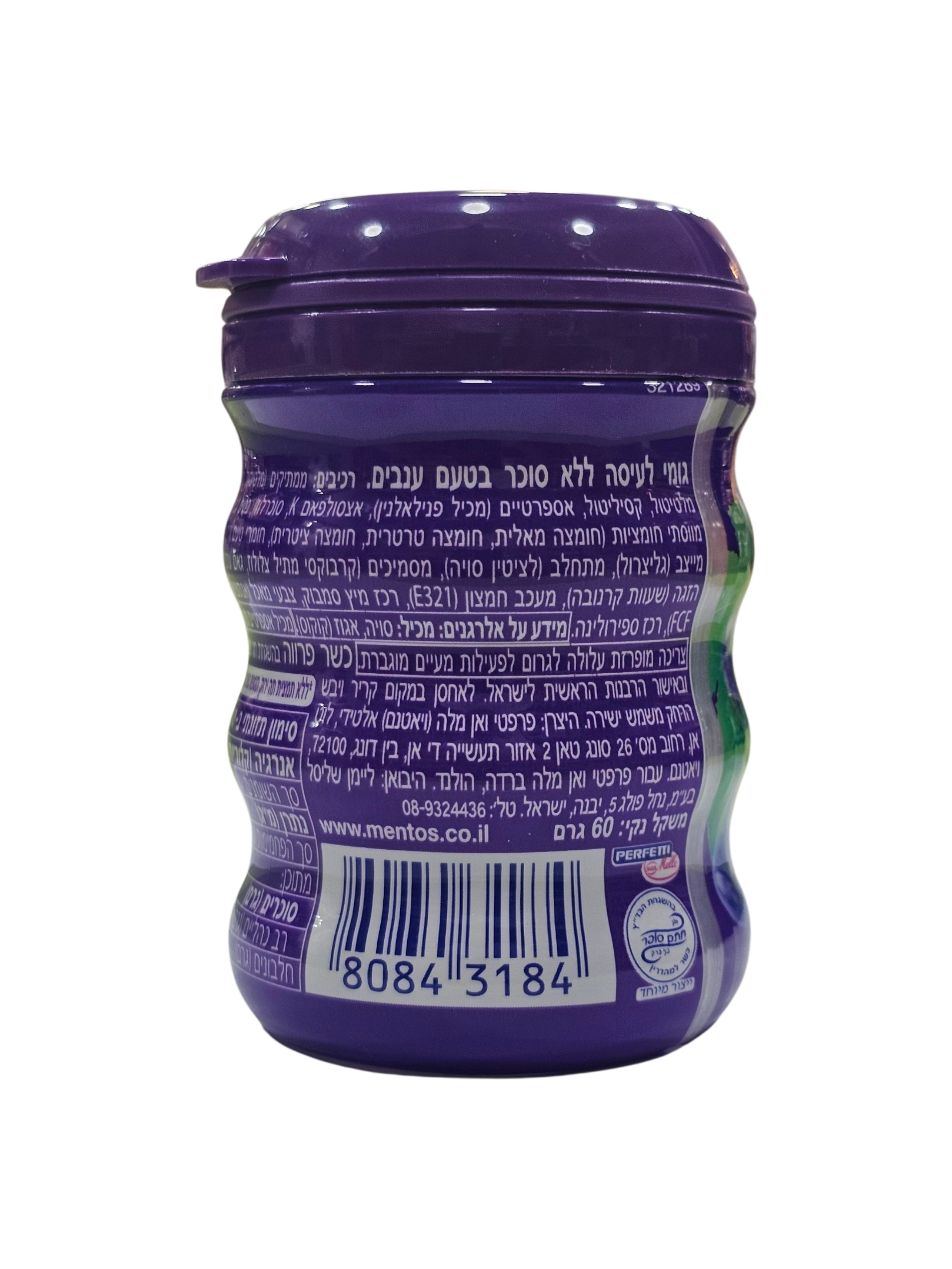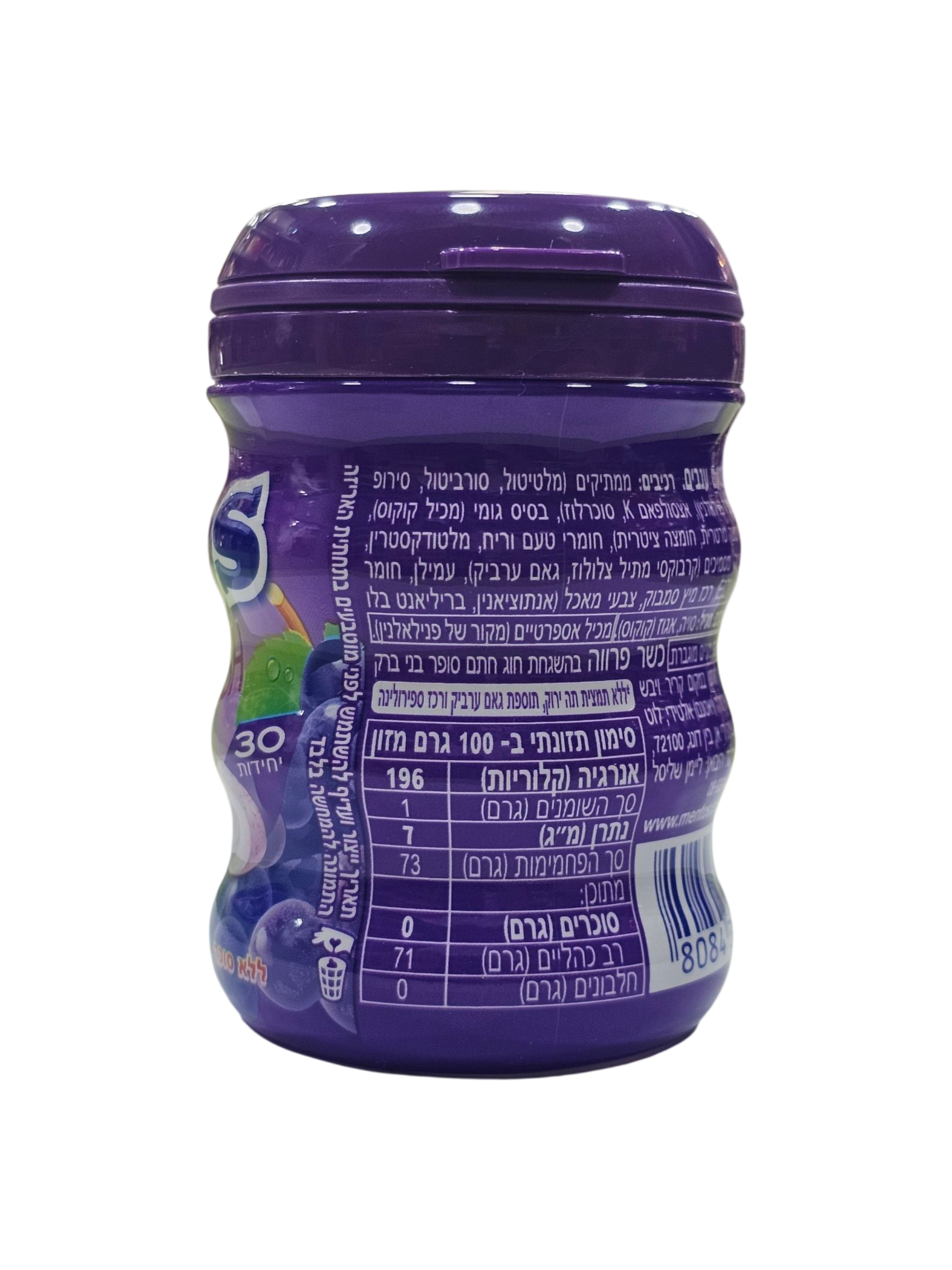 60 גרם. גומי לעיסה ללא סוכר בטעם ענבים