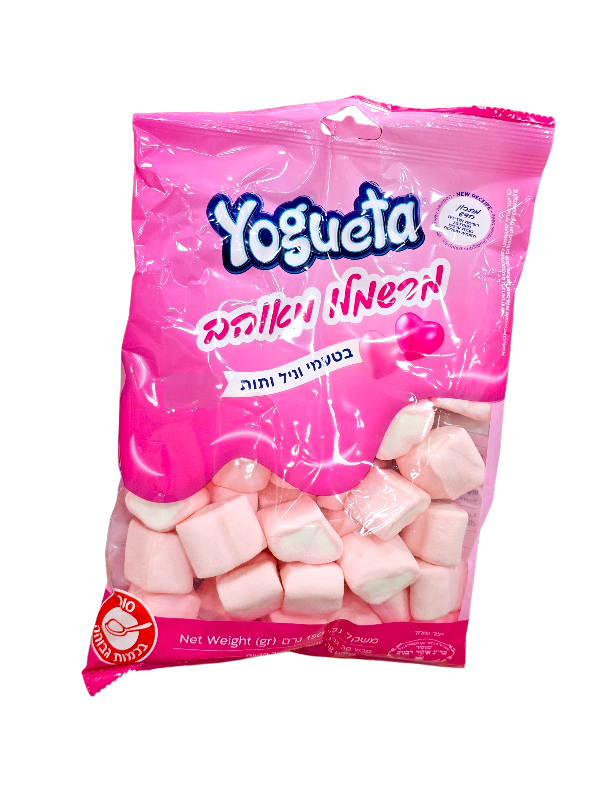 סוכר. 150 גרם. ממתק מרשמלו מוקצף בטעמי תות שדה ווניל בצורת לבבות
