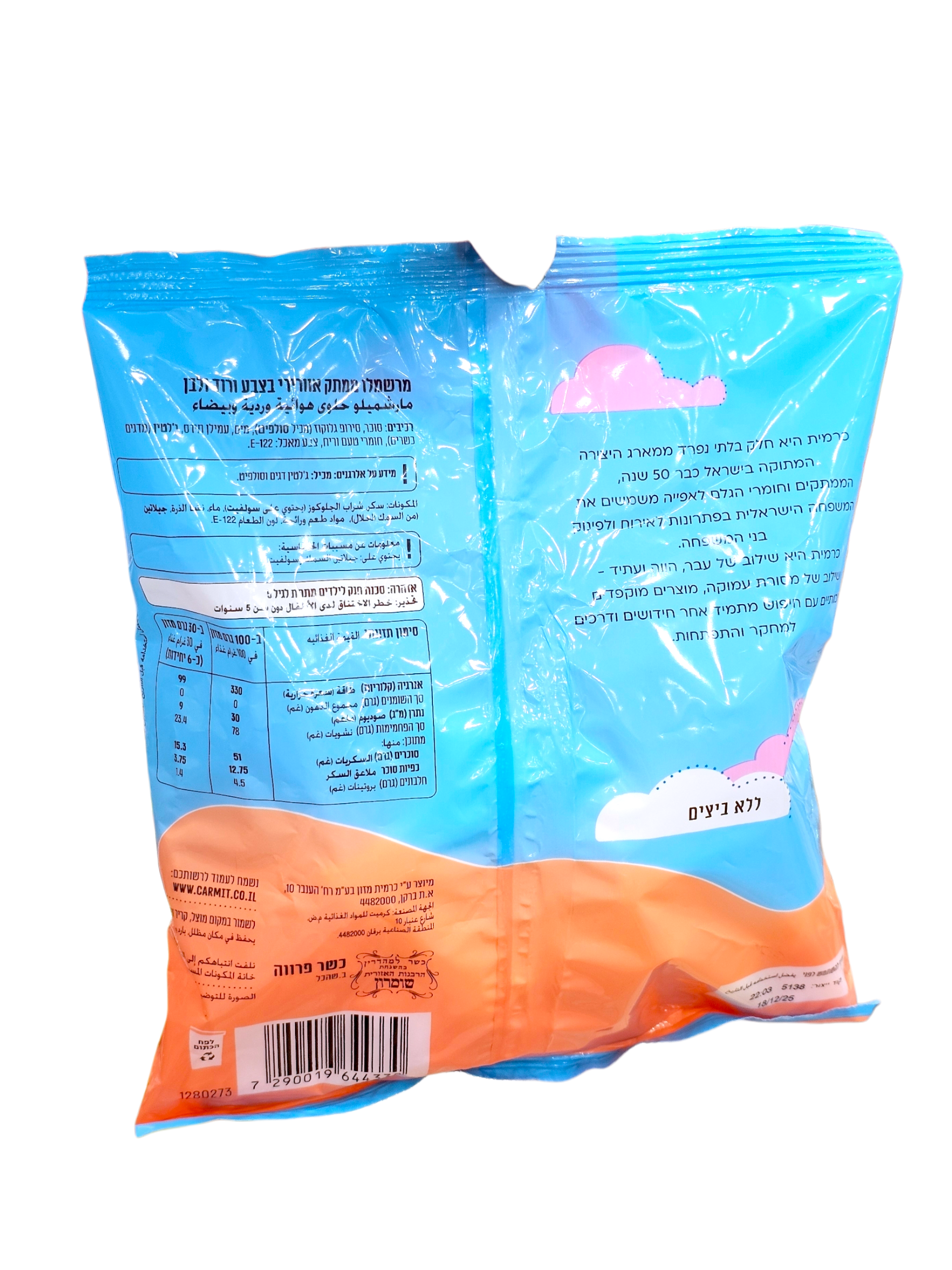 סוכר. 150 גרם. ממתק מרשמלו אוורירי בצבעי ורוד לבן