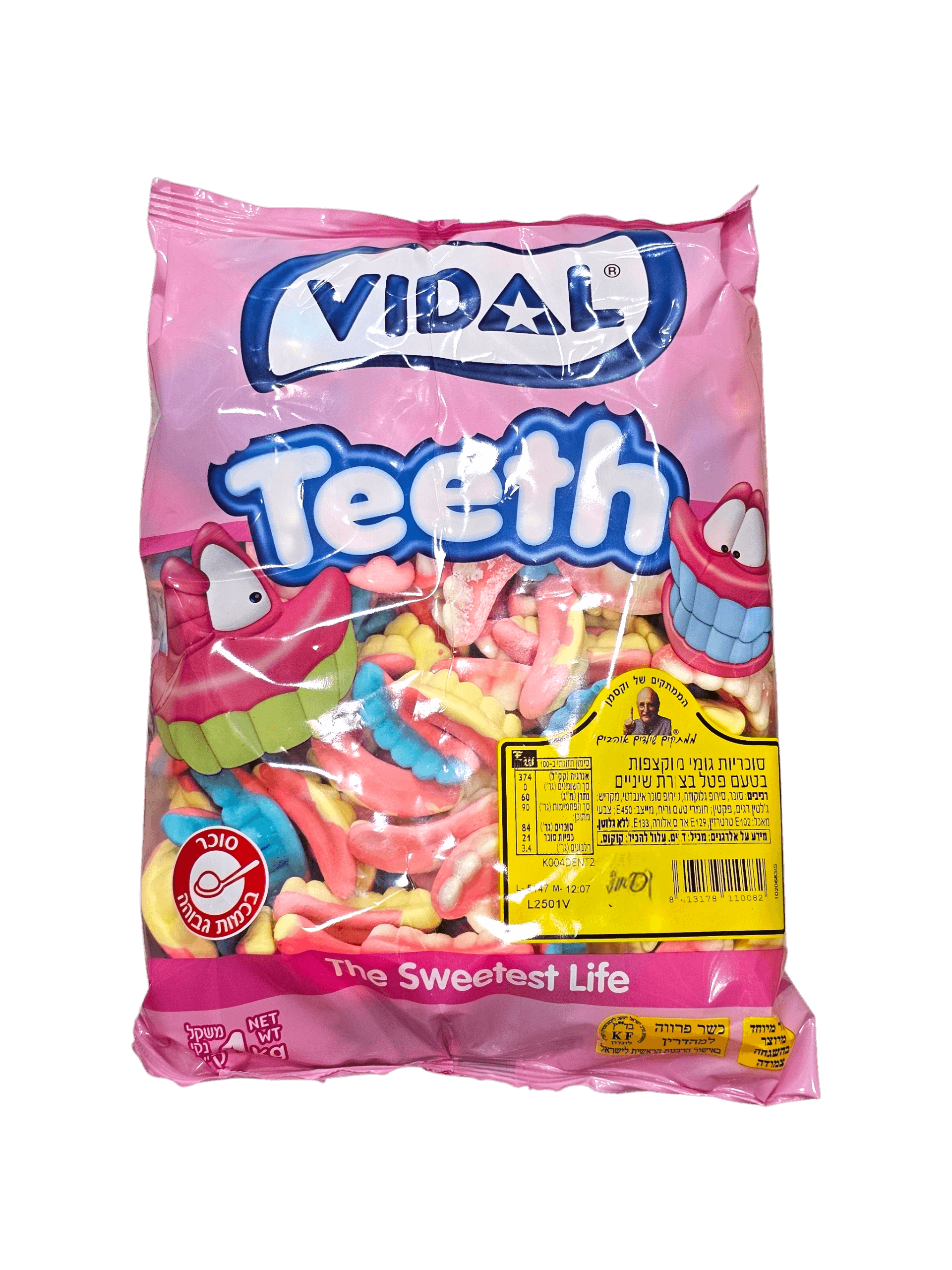 סוכר. 1 קילו. סוכריות גומי מוקצפות בטעם פטל בצורת שיניים