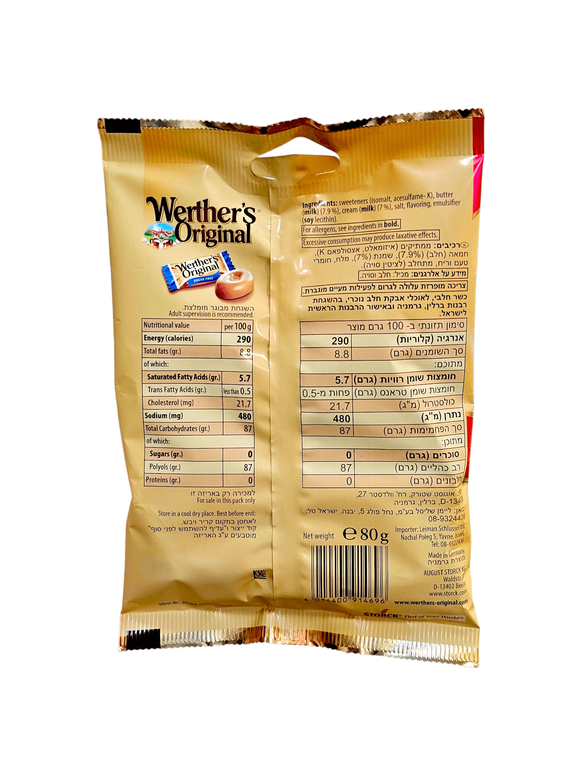 שומן. נתרן. 80 גרם. סוכריות וורטר אורגינל חמאה בטעם קרמל
