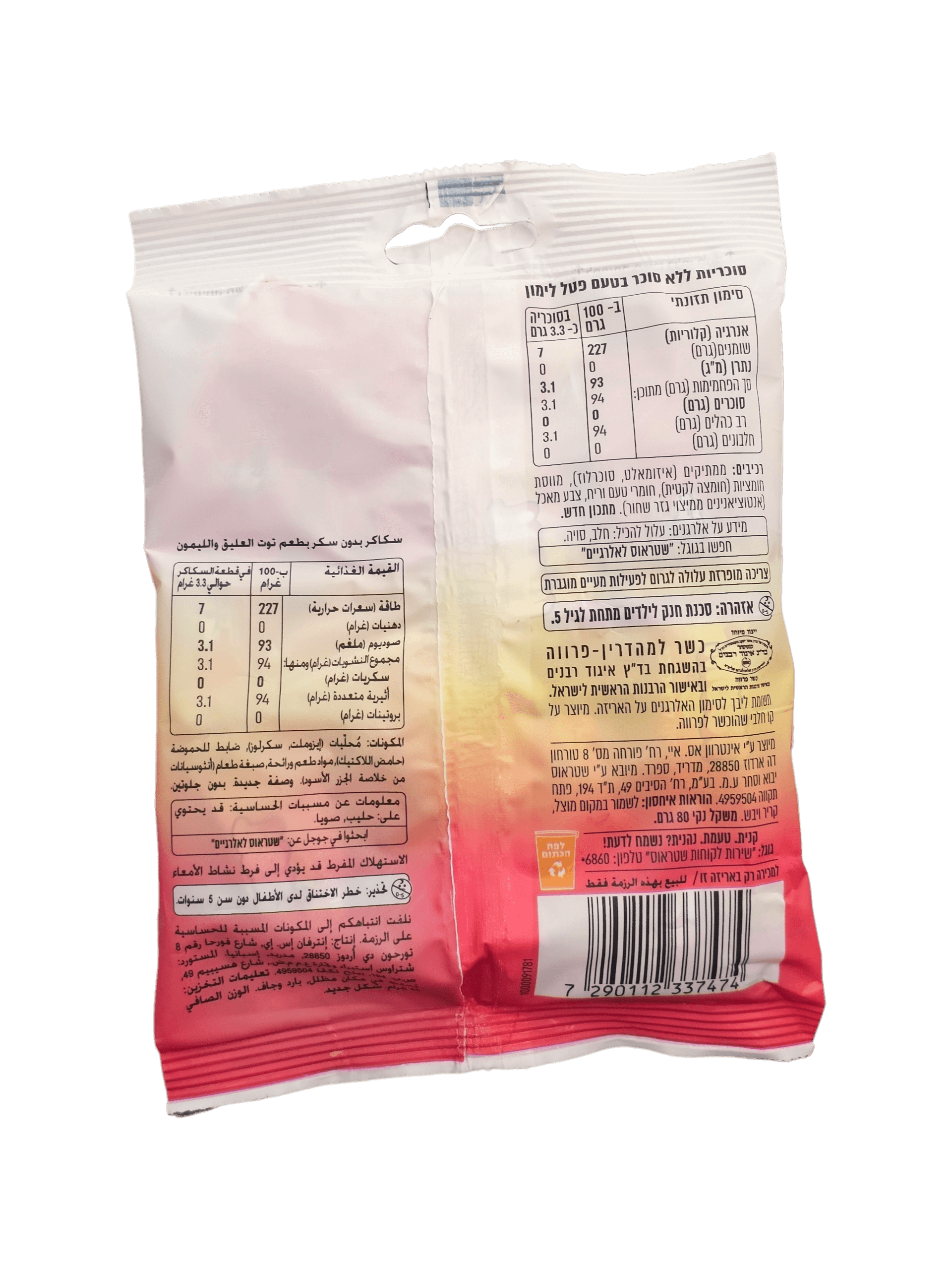 80 גרם. סוכריות קשות בטעם פטל לימון ללא סוכר ללא גלוטן