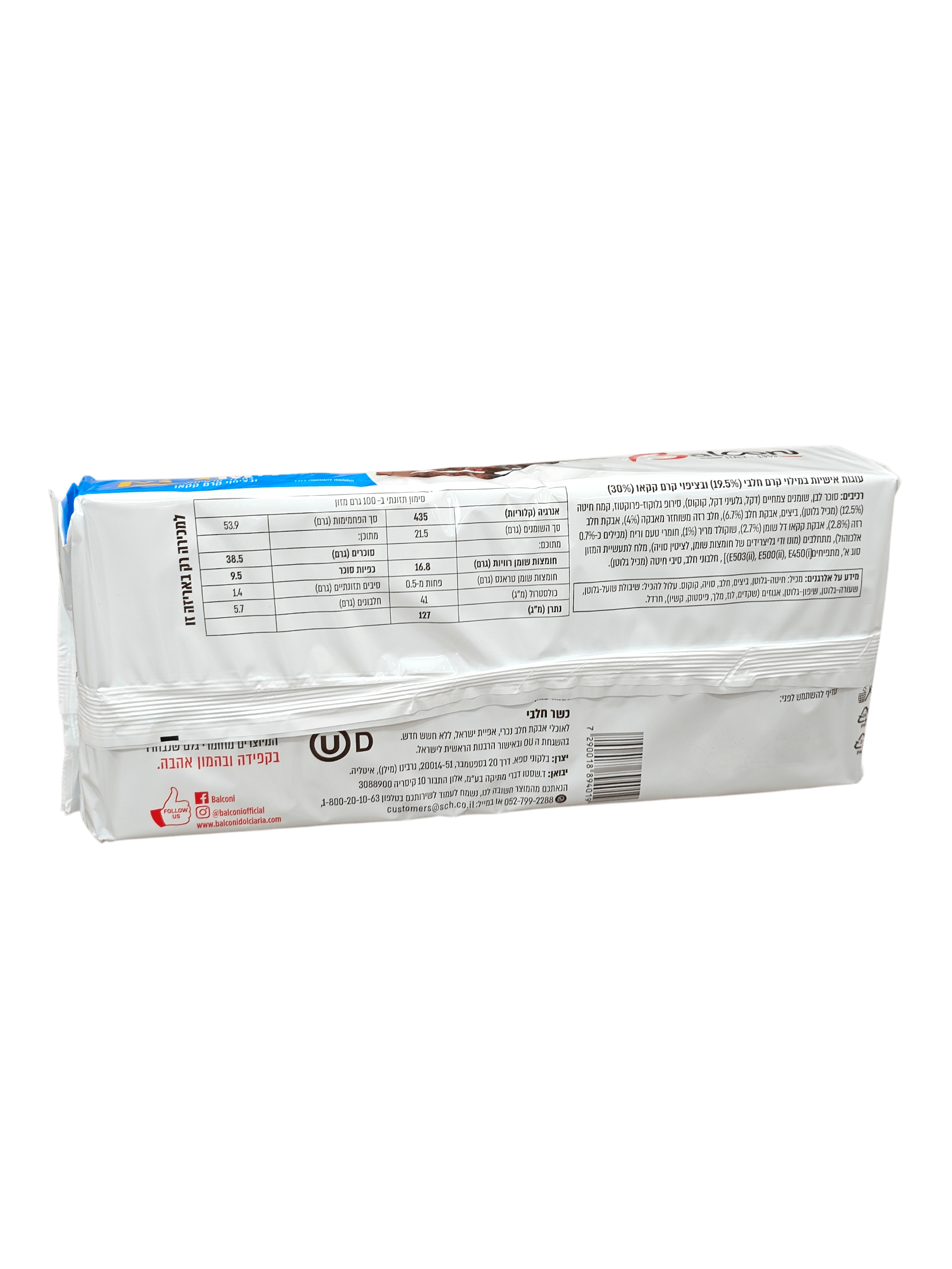 שומן. סוכר. 350 גרם. 10 יחידות עוגות אישיות איטלקיות בלקוני במילוי קרם חלבי ובציפוי קרם קקאו