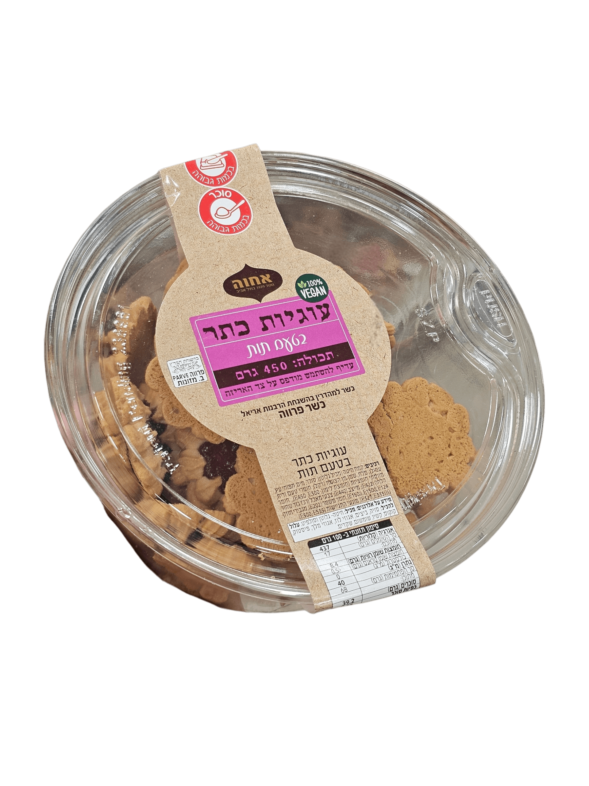שומן. סוכר. 450 גרם. עוגיות כתר בטעם תות