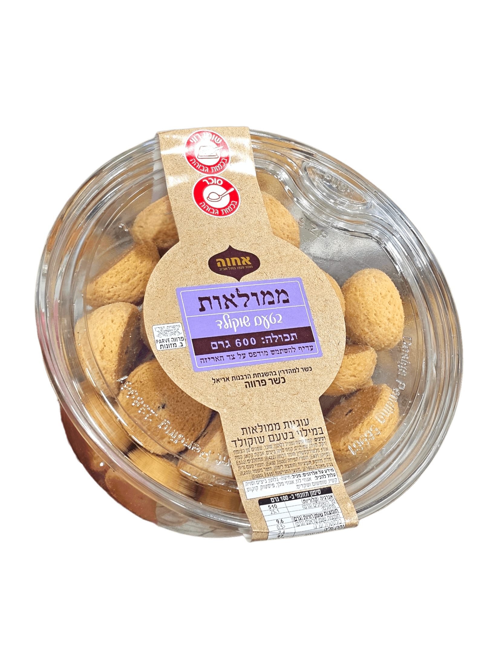 שומן. סוכר. 600 גרם. עוגיות ממולאות במילוי בטעם שוקולד