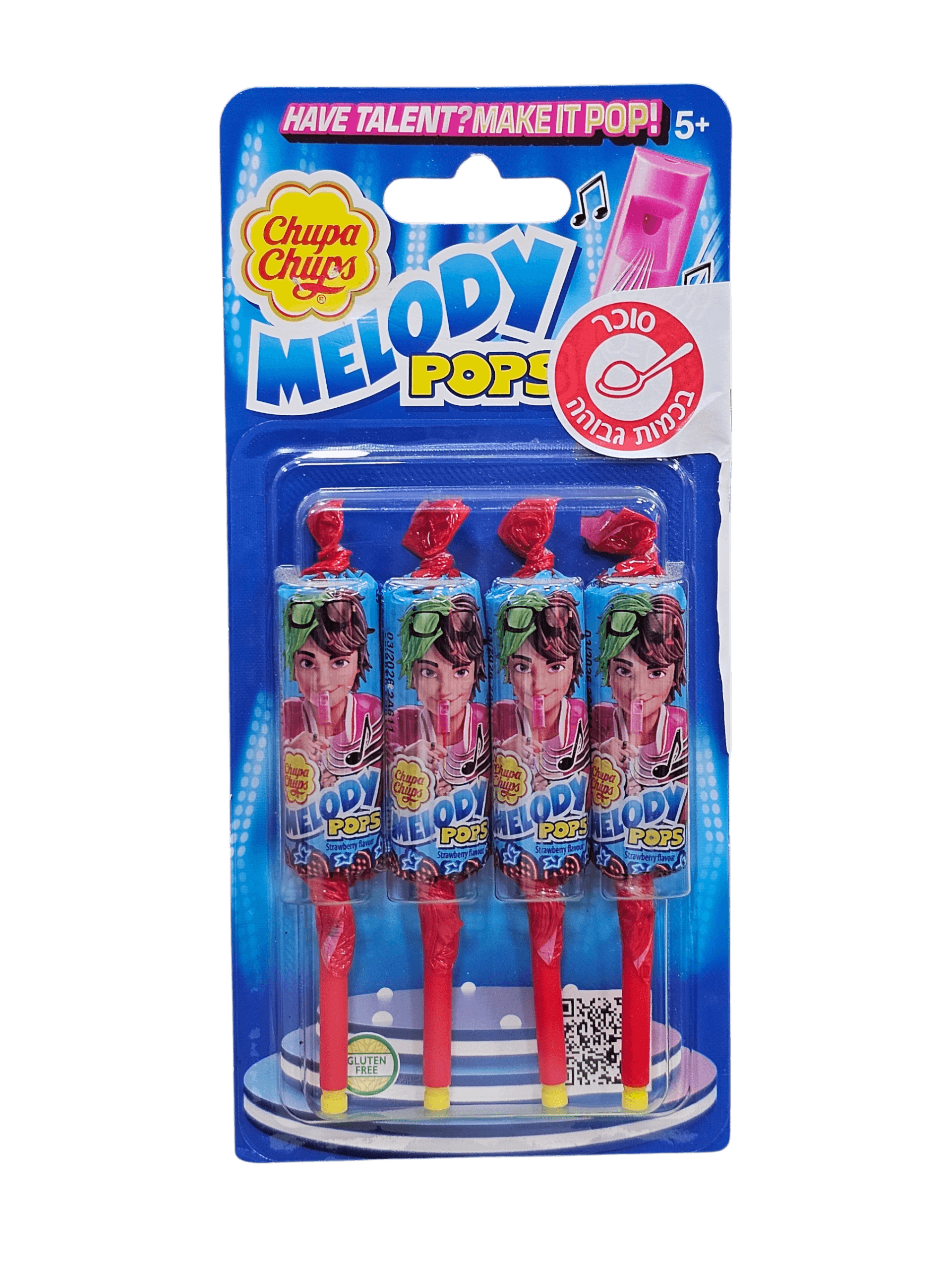סוכר. 60 גרם. סוכריות על מקל בטעם תות – לקקני משרוקית ללא גלוטן