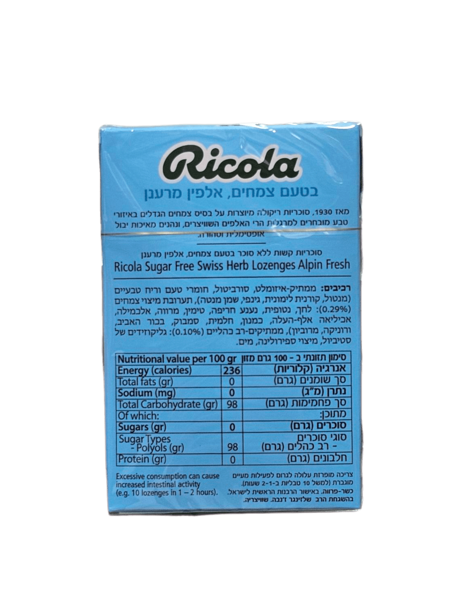 50 גרם. סוכריות קשות ללא סוכר בטעם צמחים, אלפין מרענן